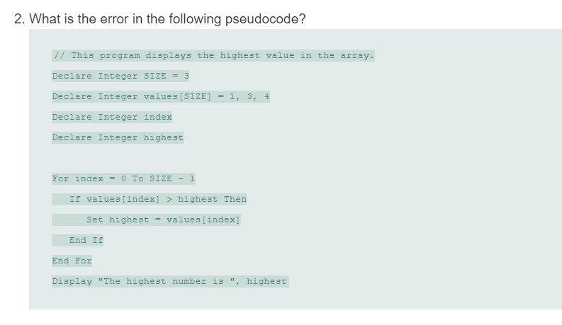 Solved What Is The Error In The Following Pseudocode Page Chegg Com